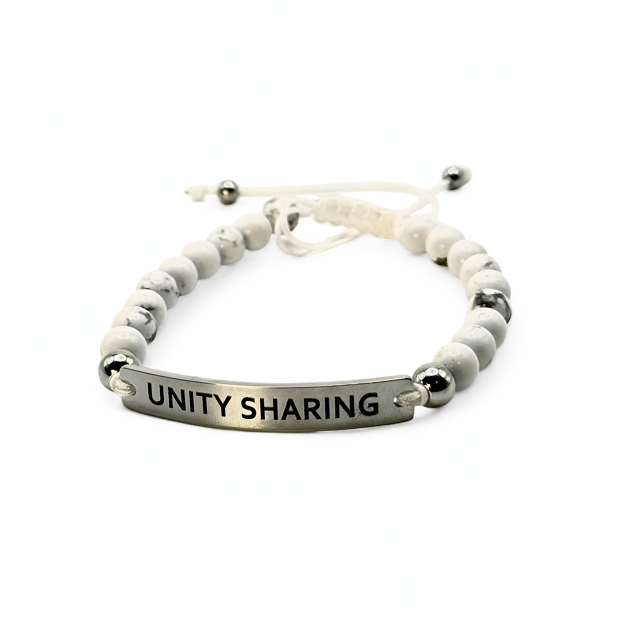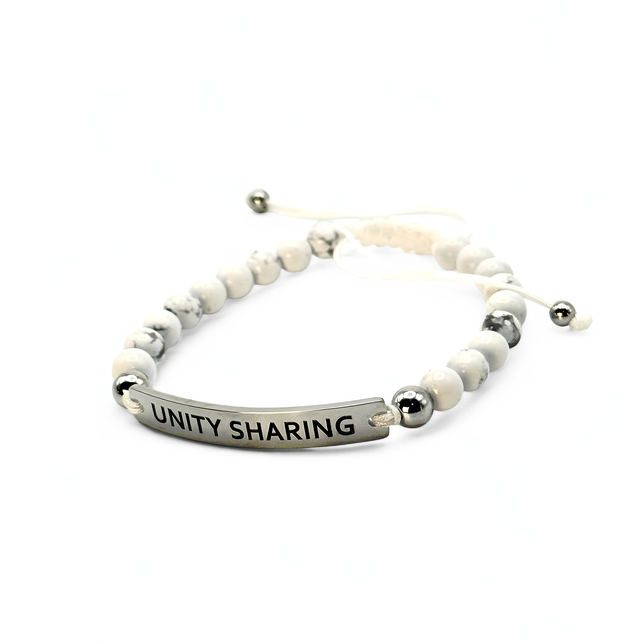 Celebrate the essence of connection with the Pure Bond Collection – a curated series of white beaded bracelets accented with your choice of silver or gold. Each piece is a statement of clarity and unity, featuring smooth white marbled or polished beads that embody purity and resilience. With Unity Sharing engraved bars and radiant accents, these bracelets are designed to remind wearers of the enduring strength found in shared purpose.